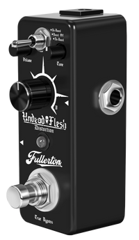 Our Undead Flesh Distortion Pedal is perfect for hard rock or heavy metal. This pedal features a special effect that completely enhances and intensifies the distortion level of the metal. The volume of the distortion can also easily be altered via slider controls, and the tone control optimizes the brightness of the sound.